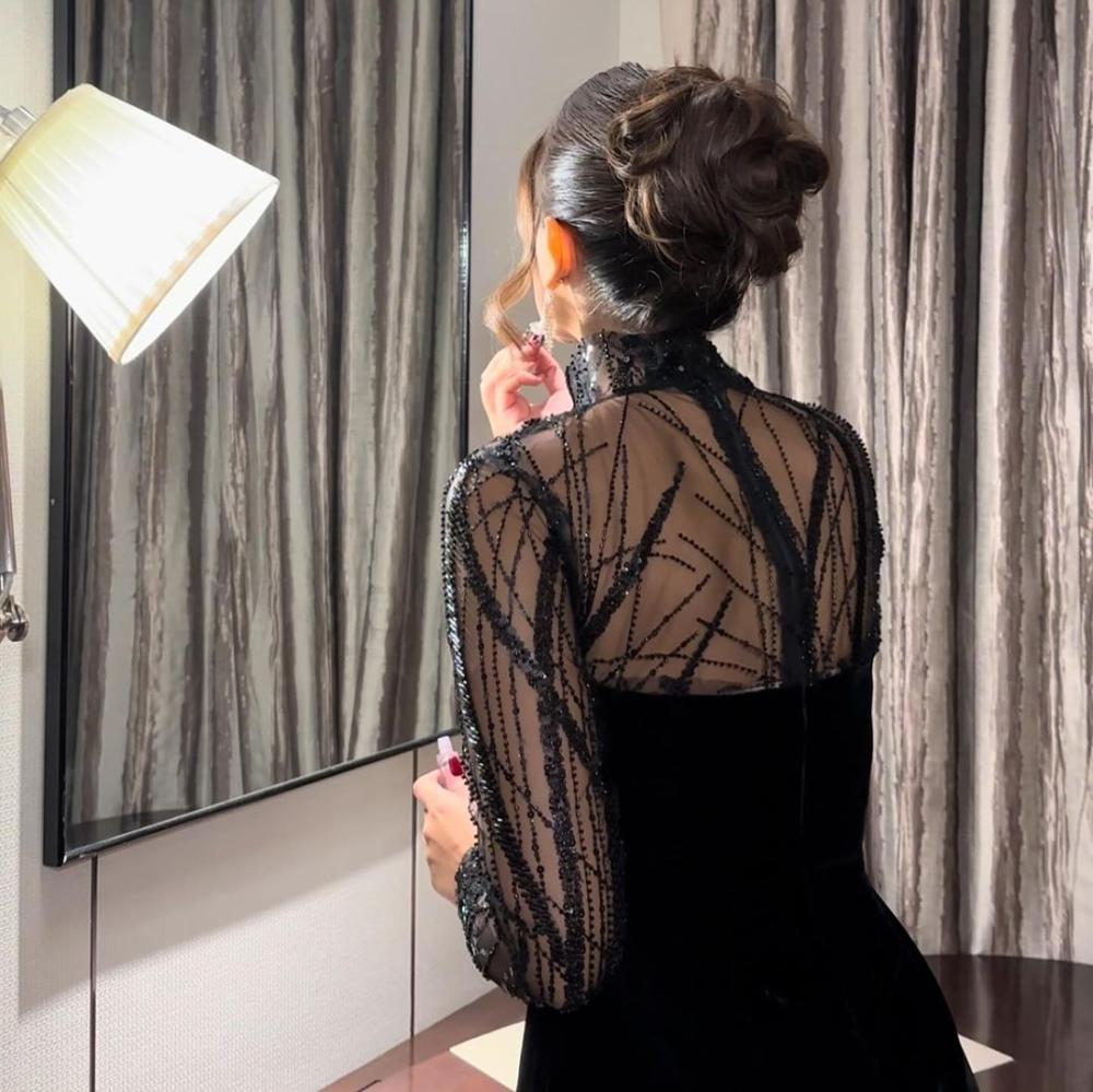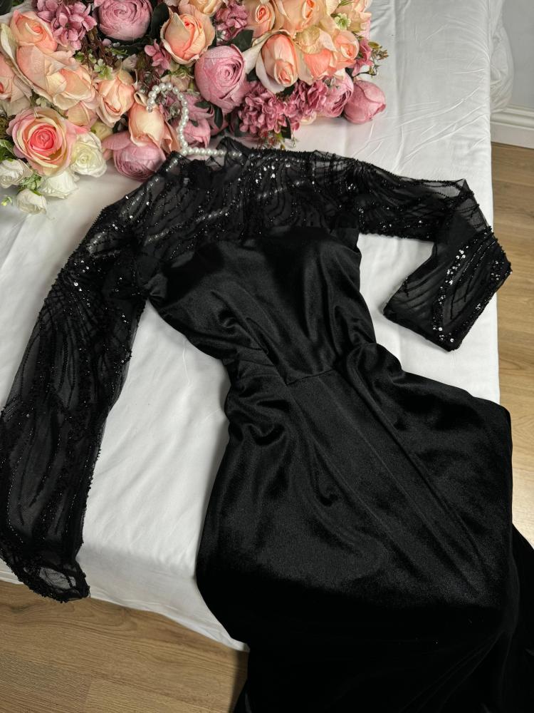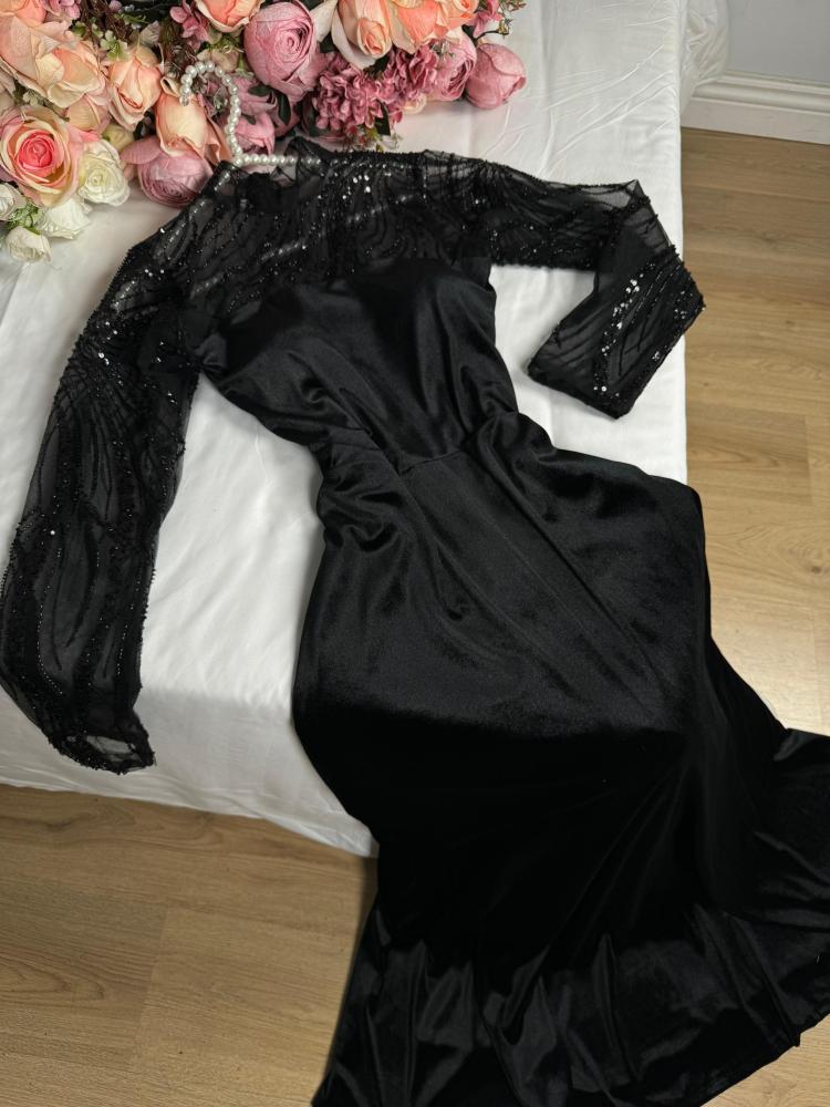 فستان سهره شتوي لون اسود الخامه :مخمل كوري اصلي