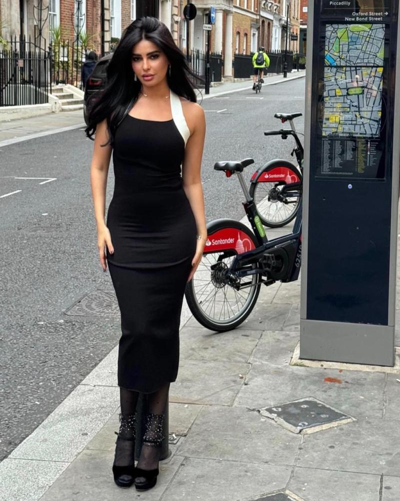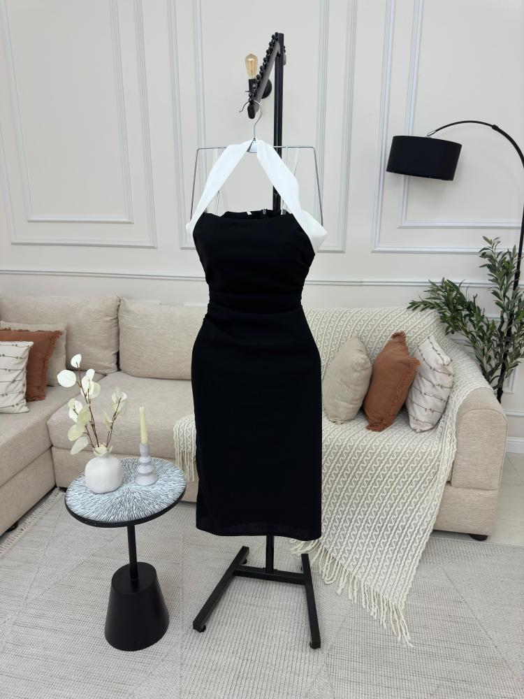 فستان بناتي ميدي الطول 45 انش او بالسم 115 سم لون اسود لون احمر ابيض انيق الخامه :كريب استرتش