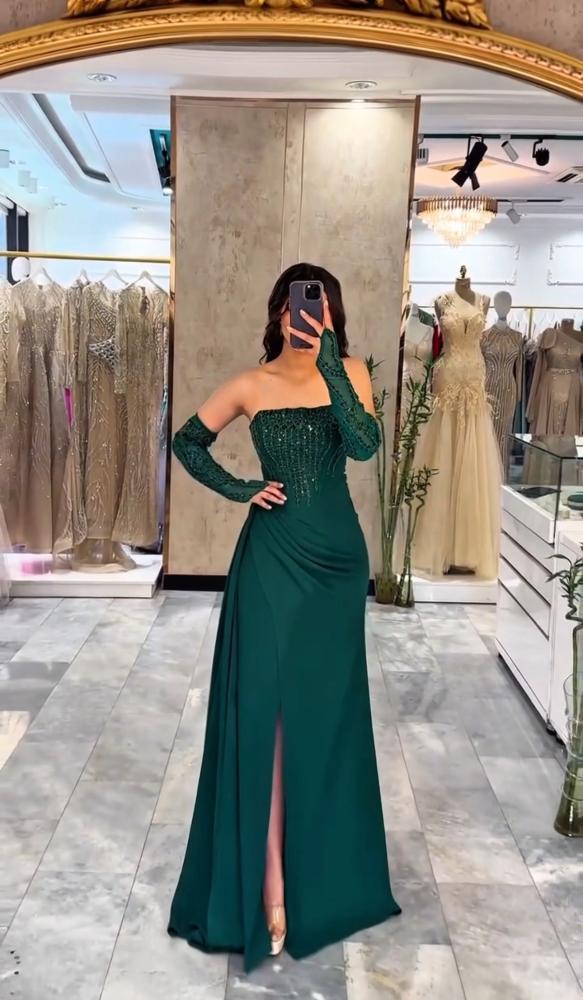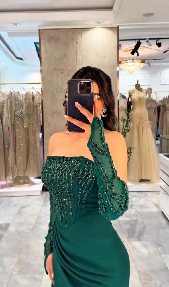 فستان سهره لون انيق راقي خامه كريب استرتش مطرز يدوي