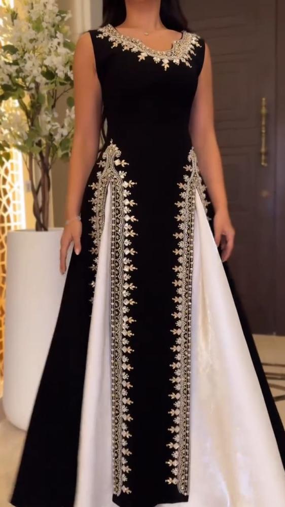 فستان رمضاني راقي لونين احمر +اسود خامه فاخره كريب استرتش +تطريز يدوي راقي