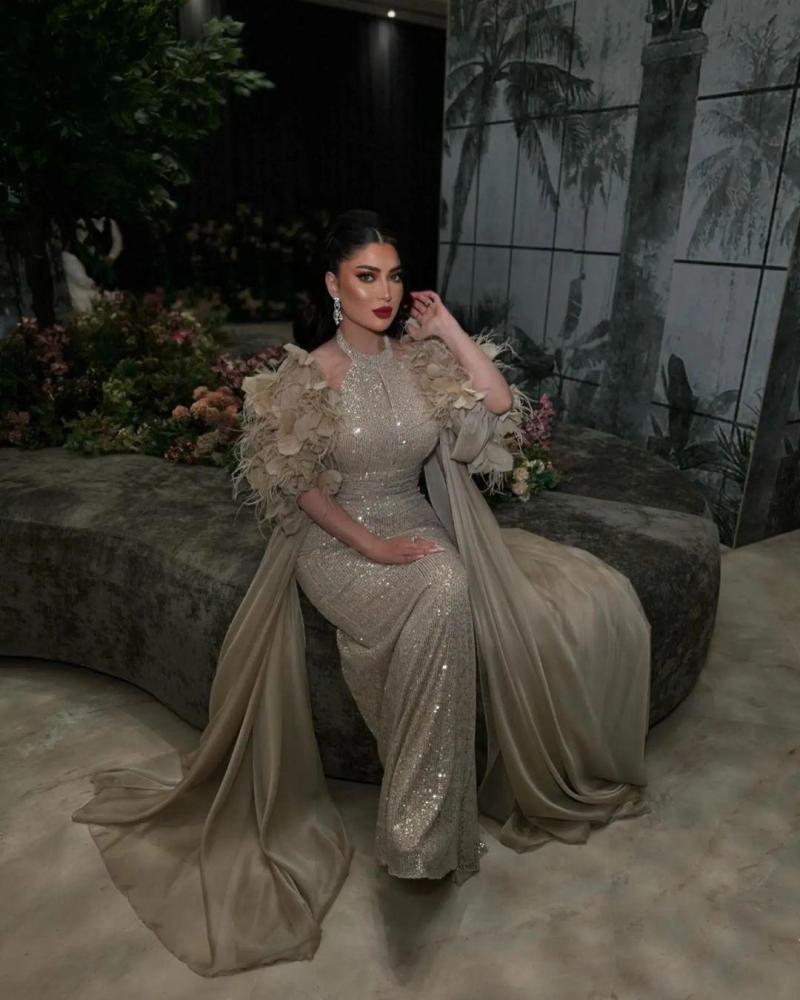 فستان سهره طويل بلون جذاب انيق الخامة: ترتر