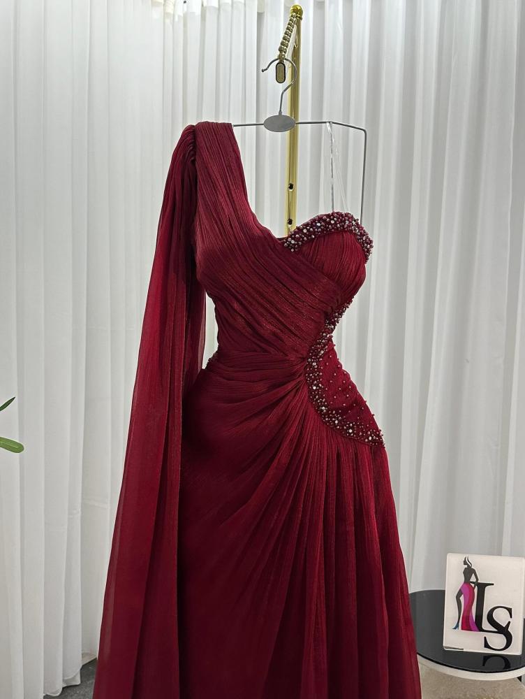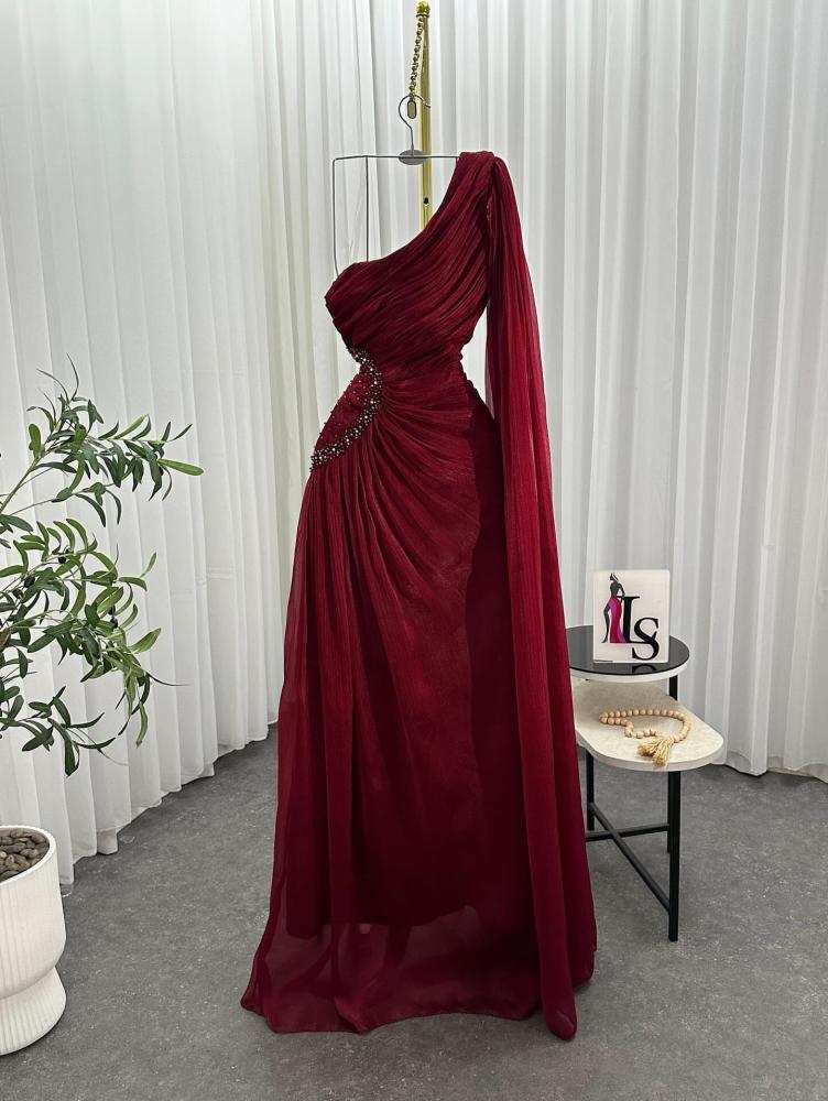 فستان سهره لون عودي داكن راقي خامه ستان ناعم عل شيفون