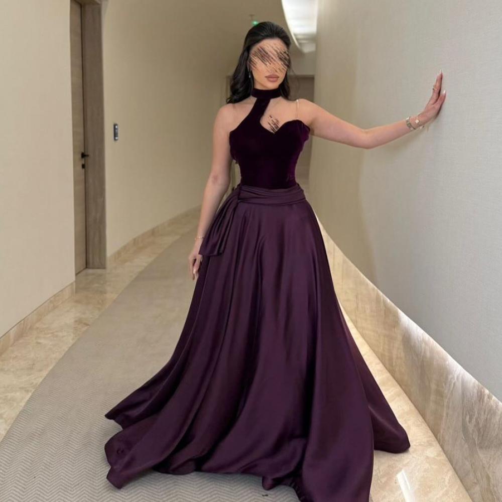 فستان سهره بنفسجي خامه مخمل عل ميكادو