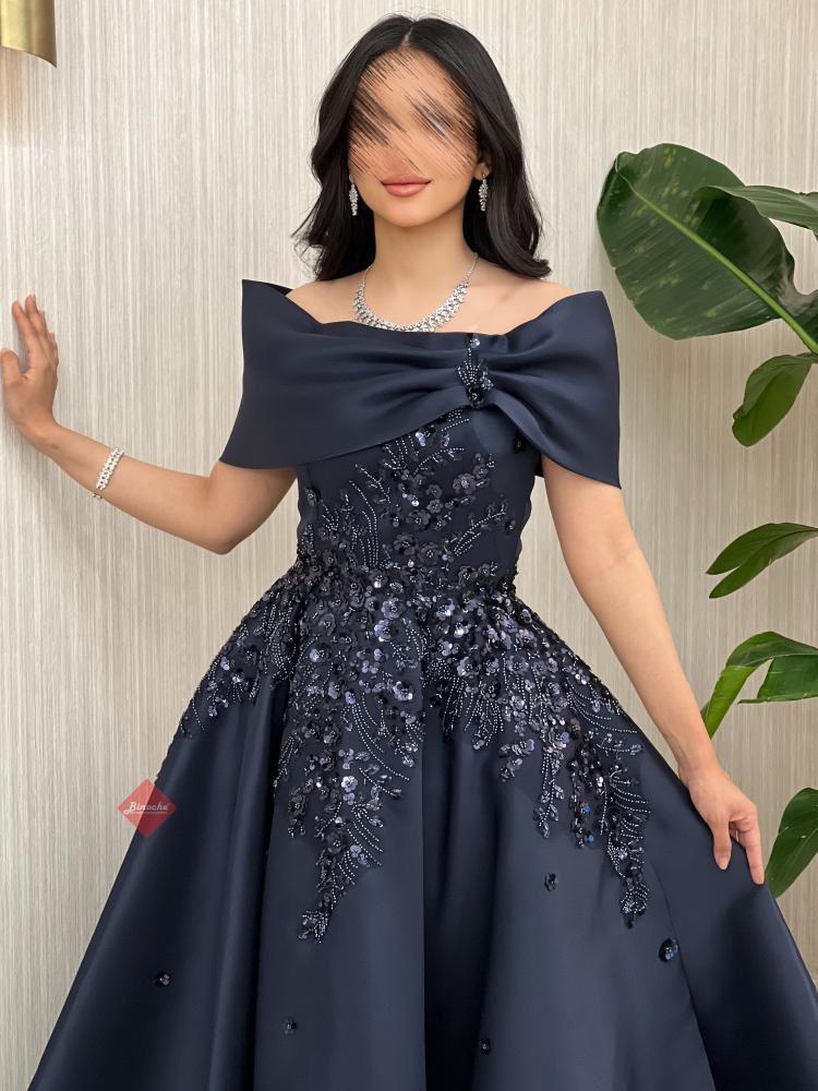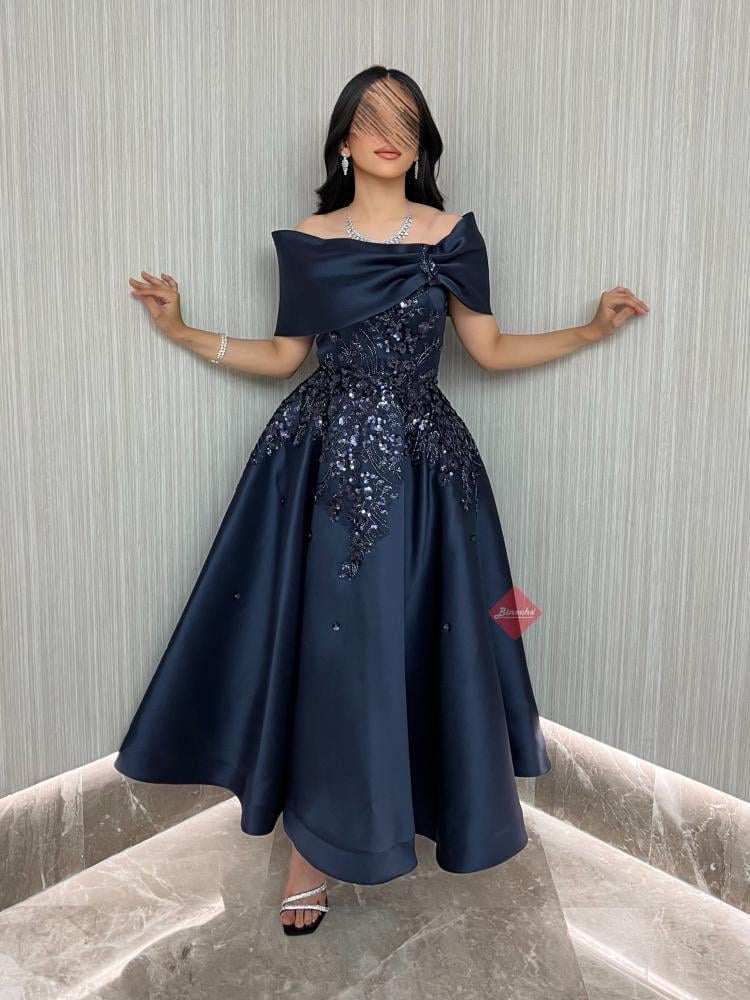 فستان سهرة ميدي انيق الخامة:ميكادو عل تل