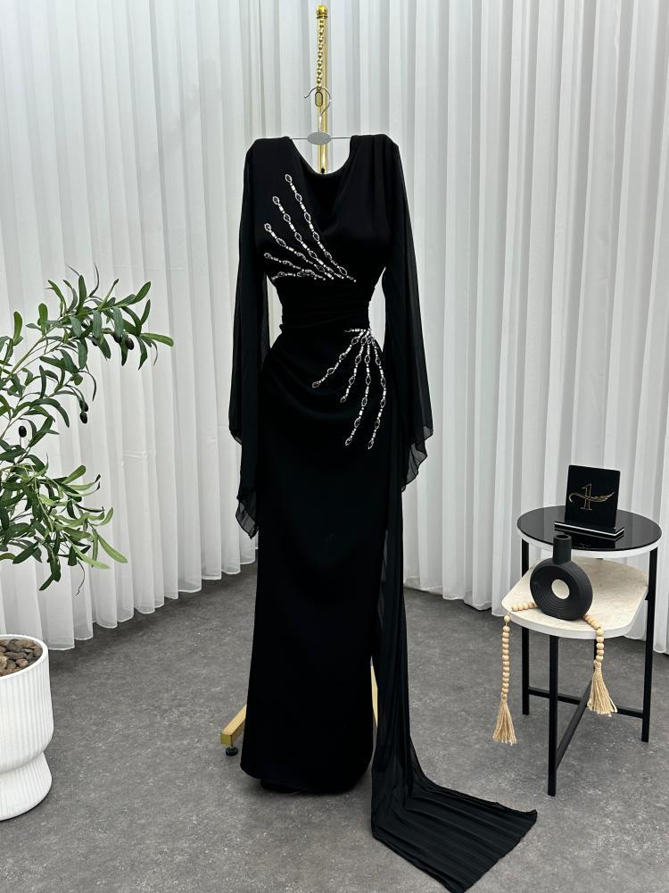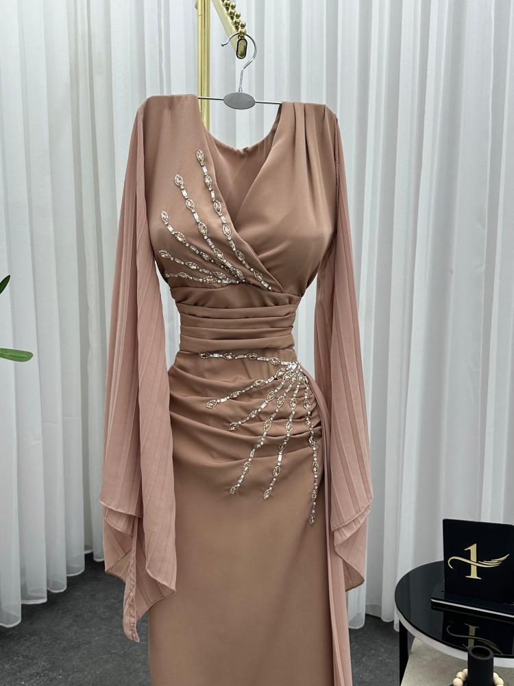 فستان سهره لون راقي خامه كريب استرتش عل شيفون