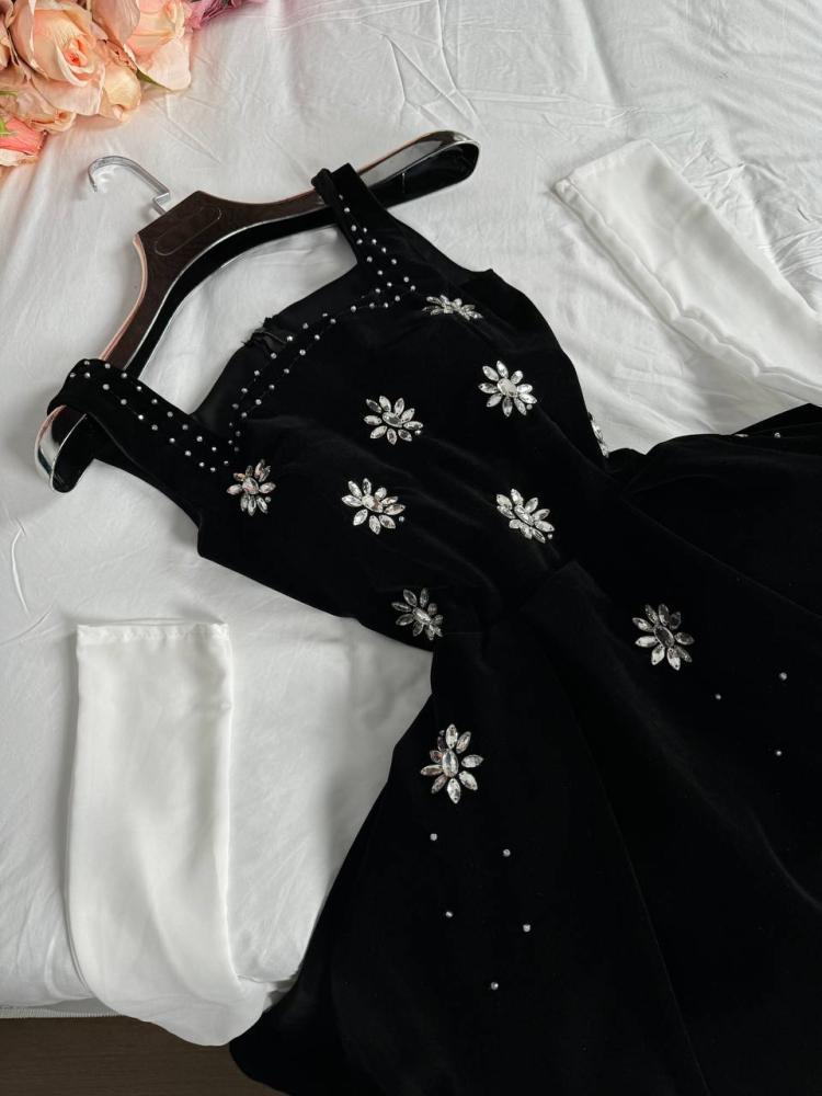 فستان شتوي سهره ميد راقي الخامه :مخمل واقف جوخ راااقي الاصلي + قفاز مطاط + تطريز بالقماش نفسه + فيبر نافش + دبل جيبون