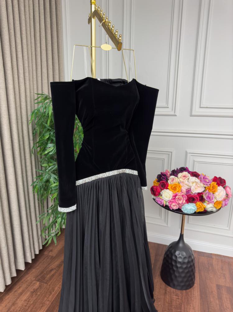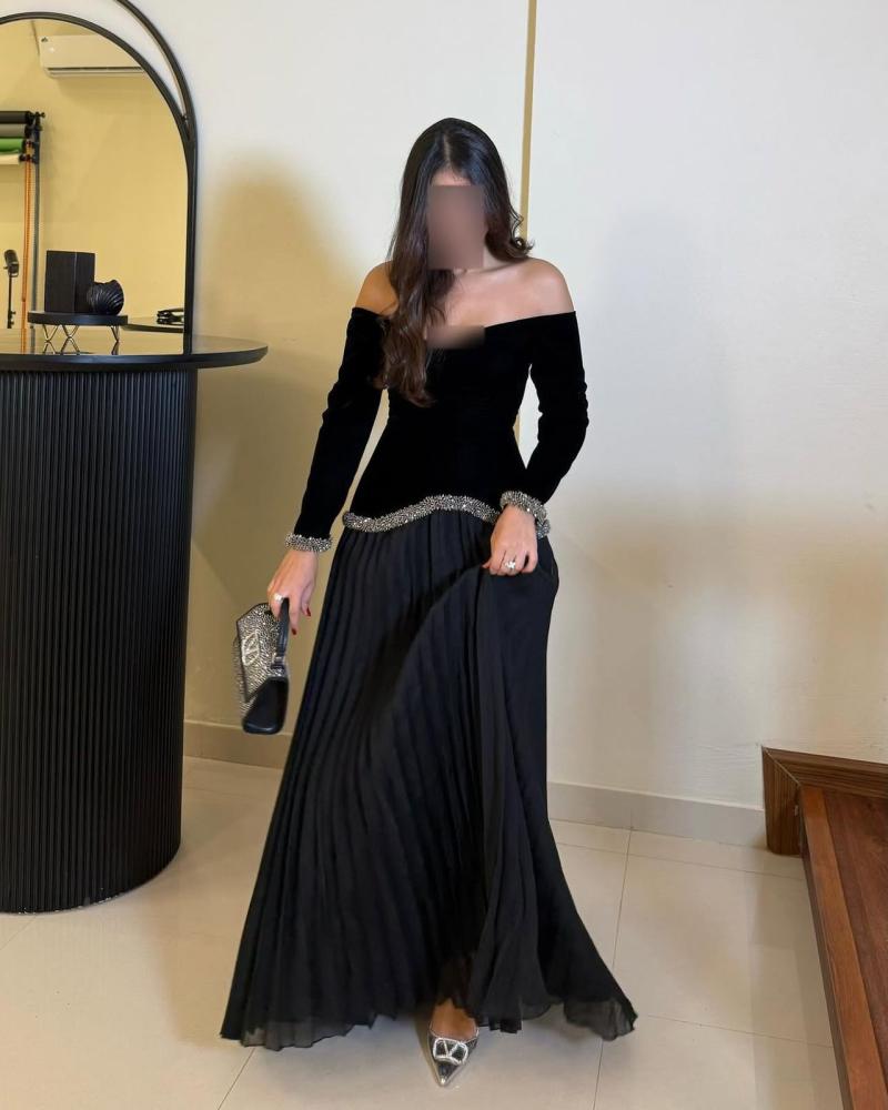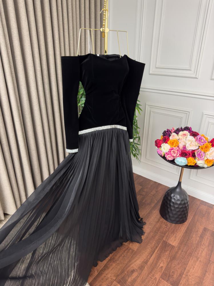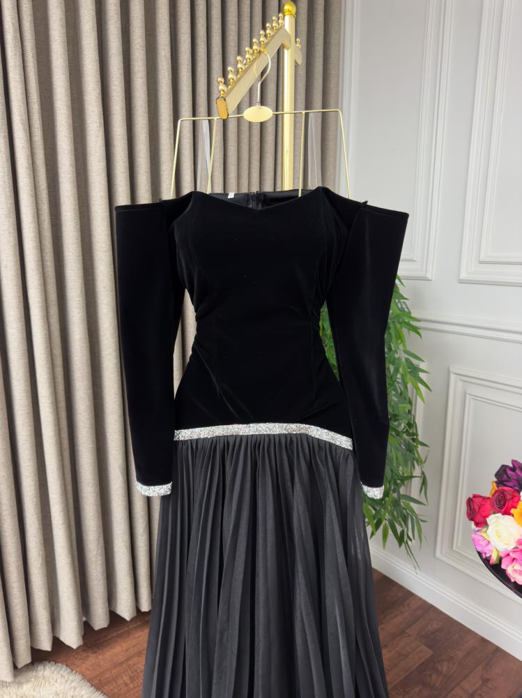 فستان شتوي سهره لون اسود راقي خامه جوخ+جازار مقلم