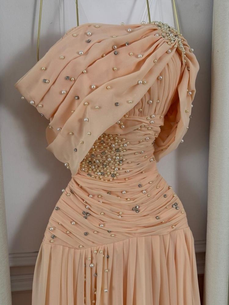 فستان بناتي لون راقي خامه شيفون جورجيت مطرز لولو