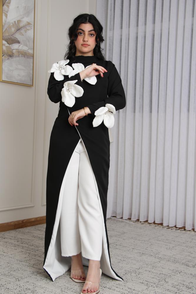 جمسبوت سهره راقي لون اسود بابيض خامه كريب استرتش +تفته
