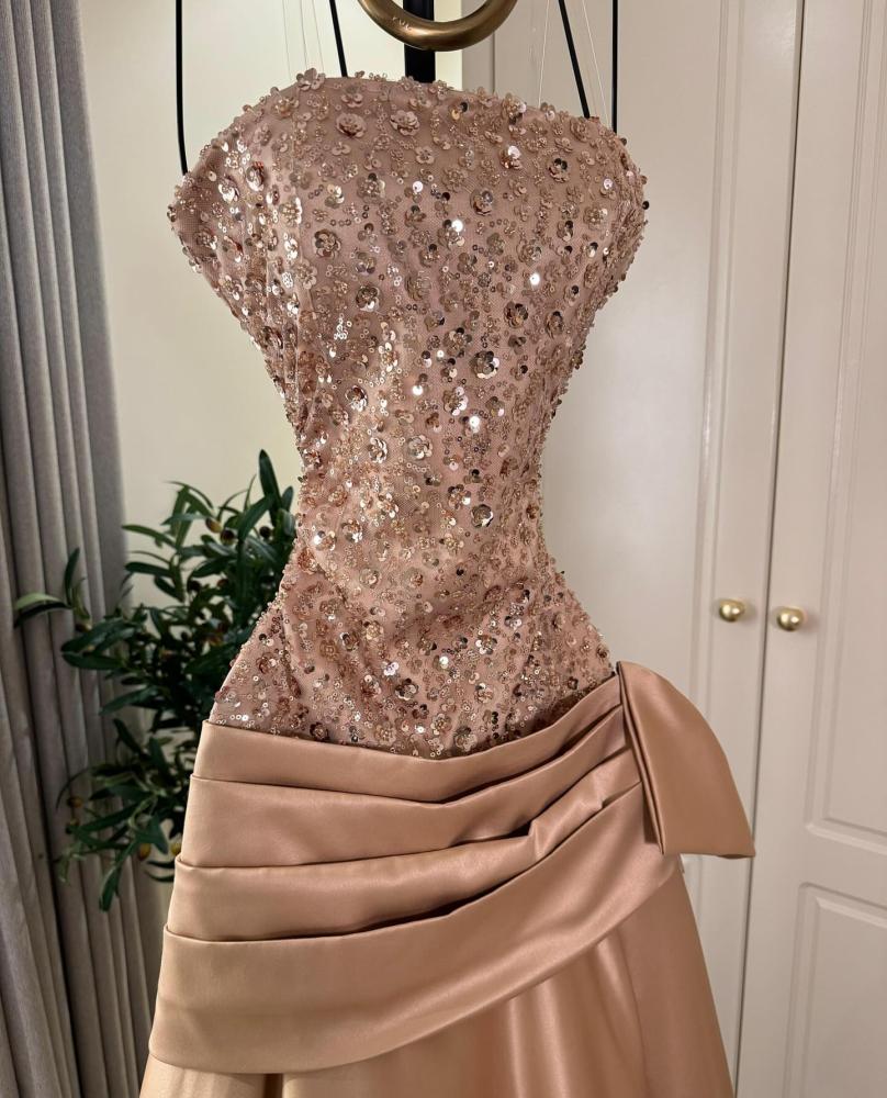 فستان سهره لون انيق راقي خامه ترتر + ميكادو