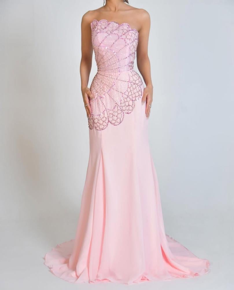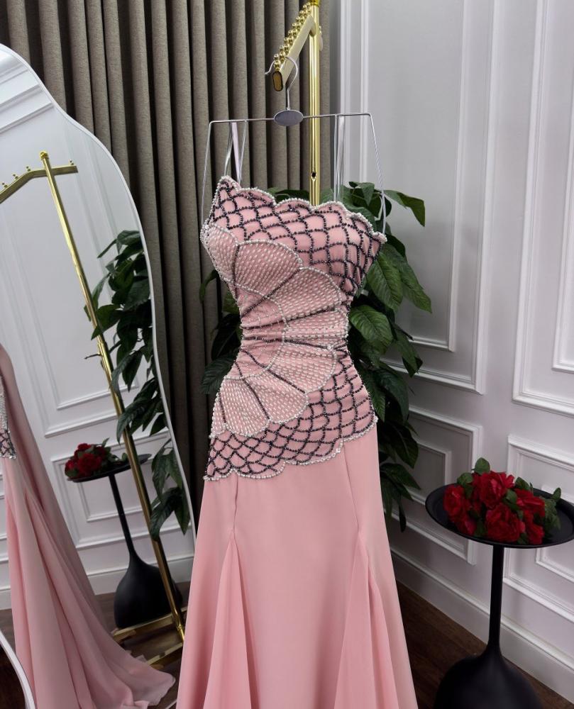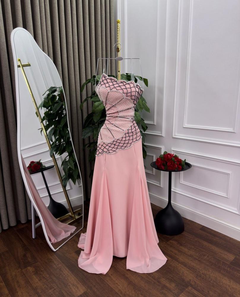 فستان سهره لون راقي خامه كريب استرتش + تطريز يدوي راقي