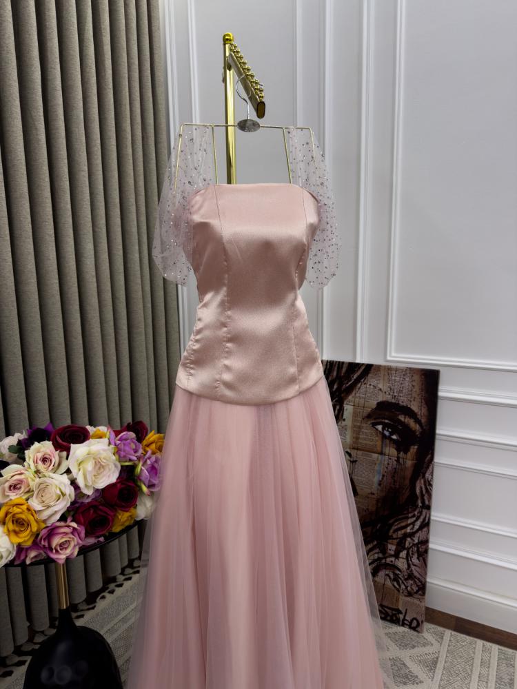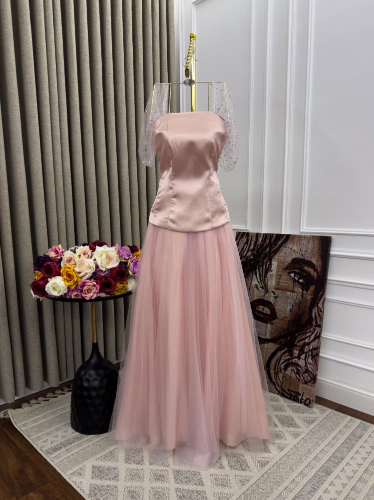 فستان سهره لون انيق راقي خامه ميكادو +تل