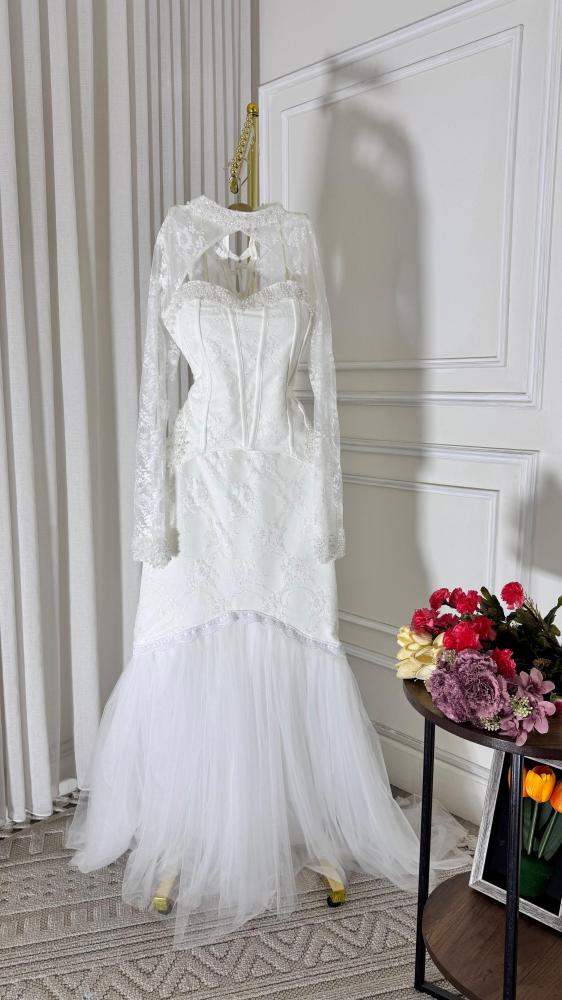 فستان سهره لون راقي خامه باربي + تل تطريز يدوي راقي
