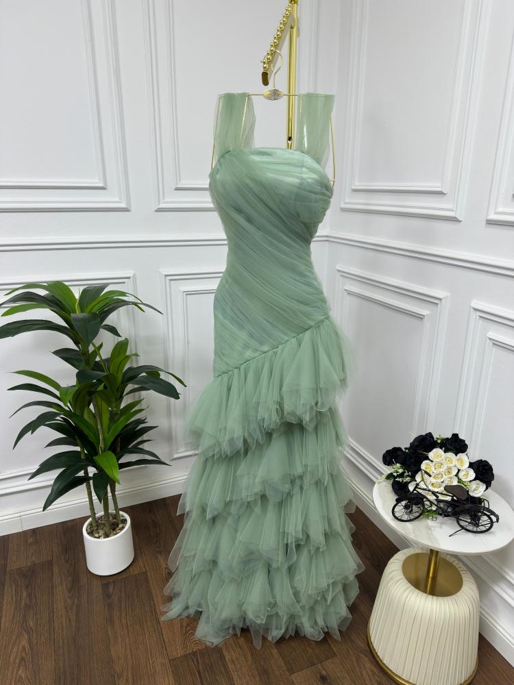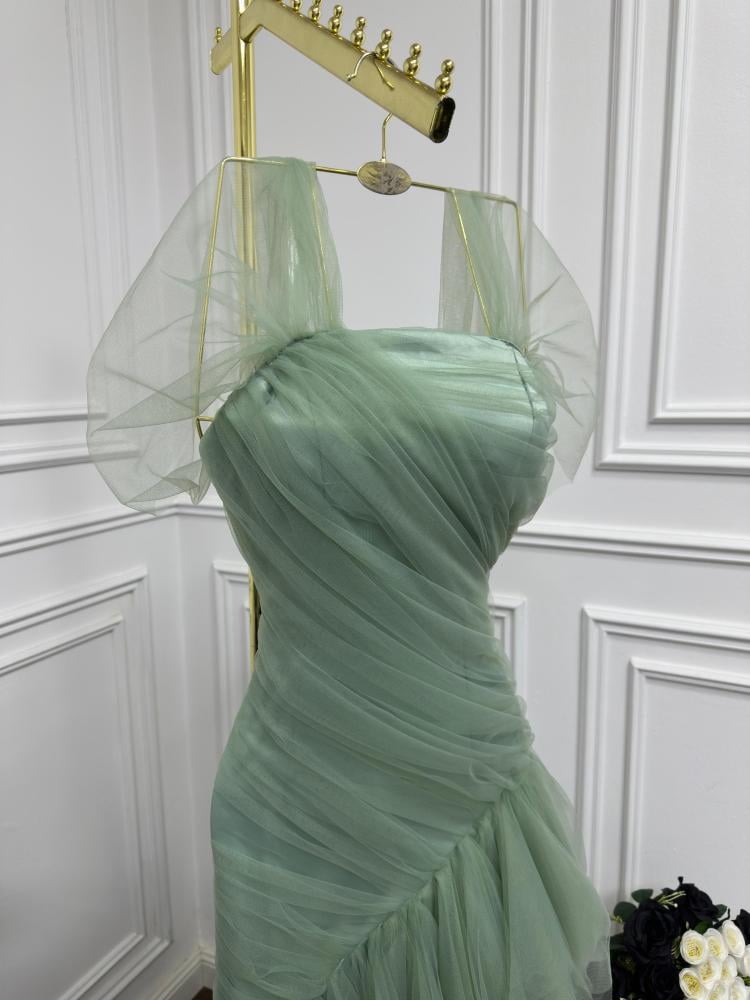 الفستان الظاهر في الصورة يتميز بتصميم أنيق وعصري ، وهو طويل يناسب المناسبات الرسمية والاحتفالات. يتميز الفستان بقصته الضيقة التي تعانق الجسم لتبرز القوام بشكل جميل، مع تفاصيل فريدة على الأكمام.