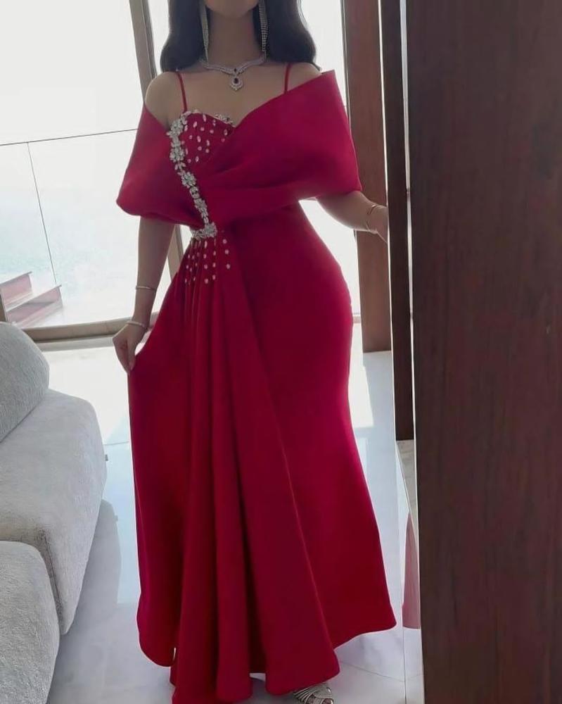 فستان سهره احمر انيق  الخامه :كريب استرتش