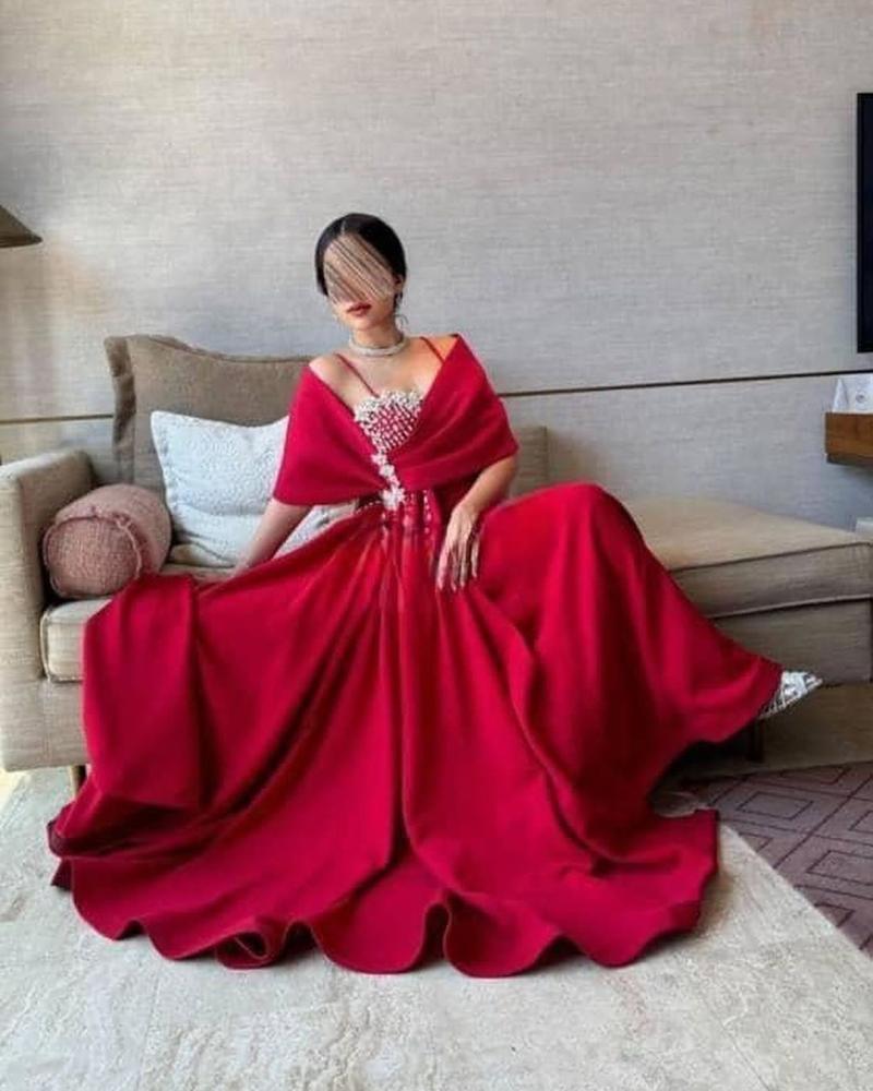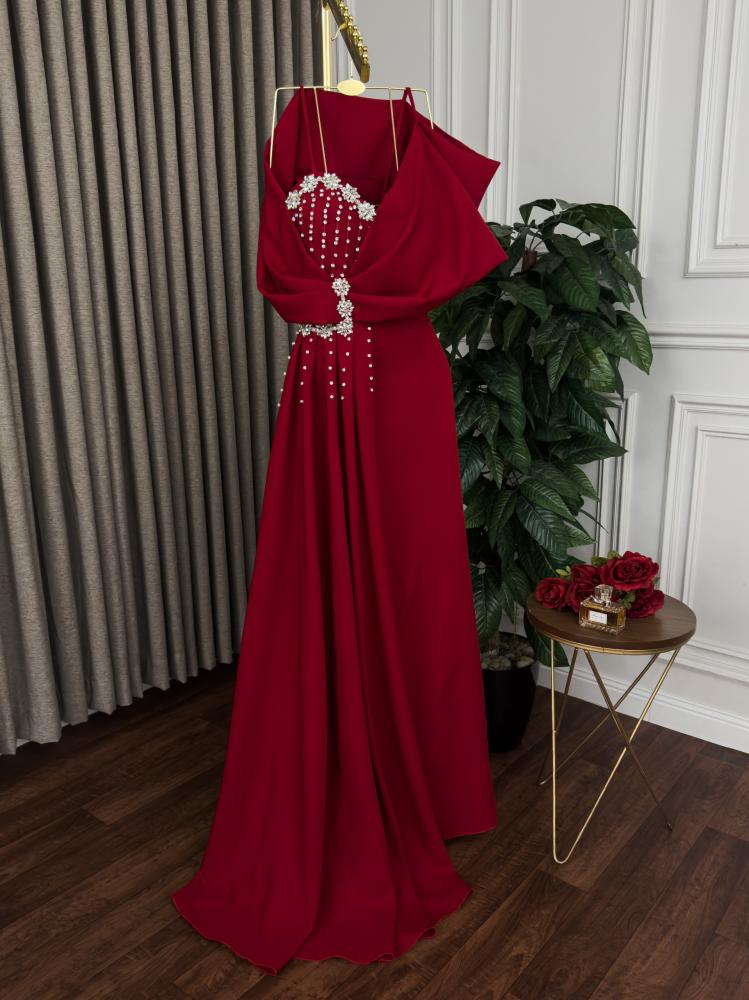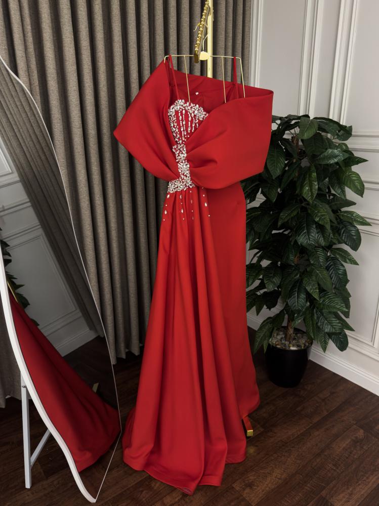 فستان سهره احمر انيق الخامه :كريب استرتش