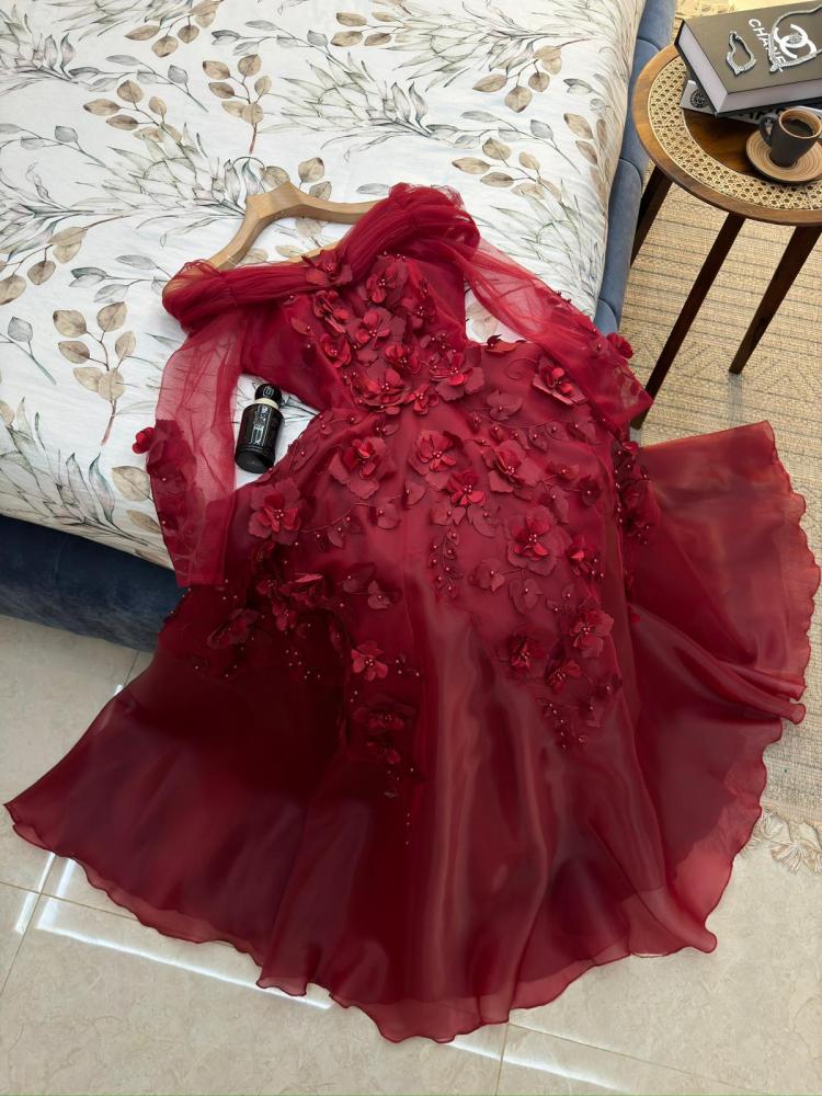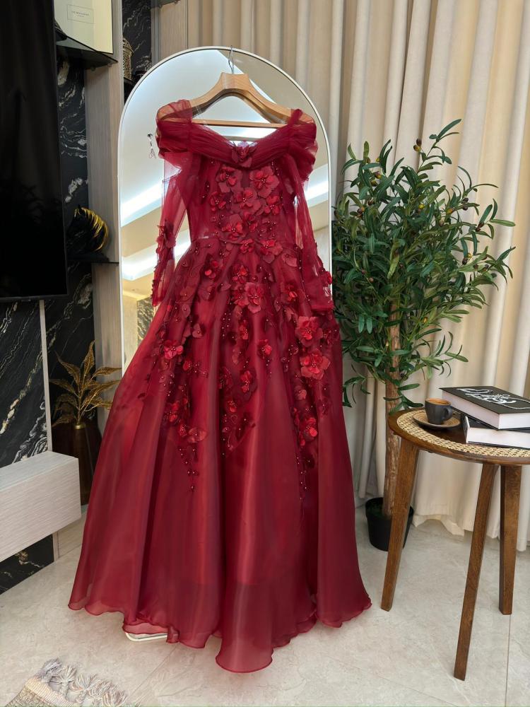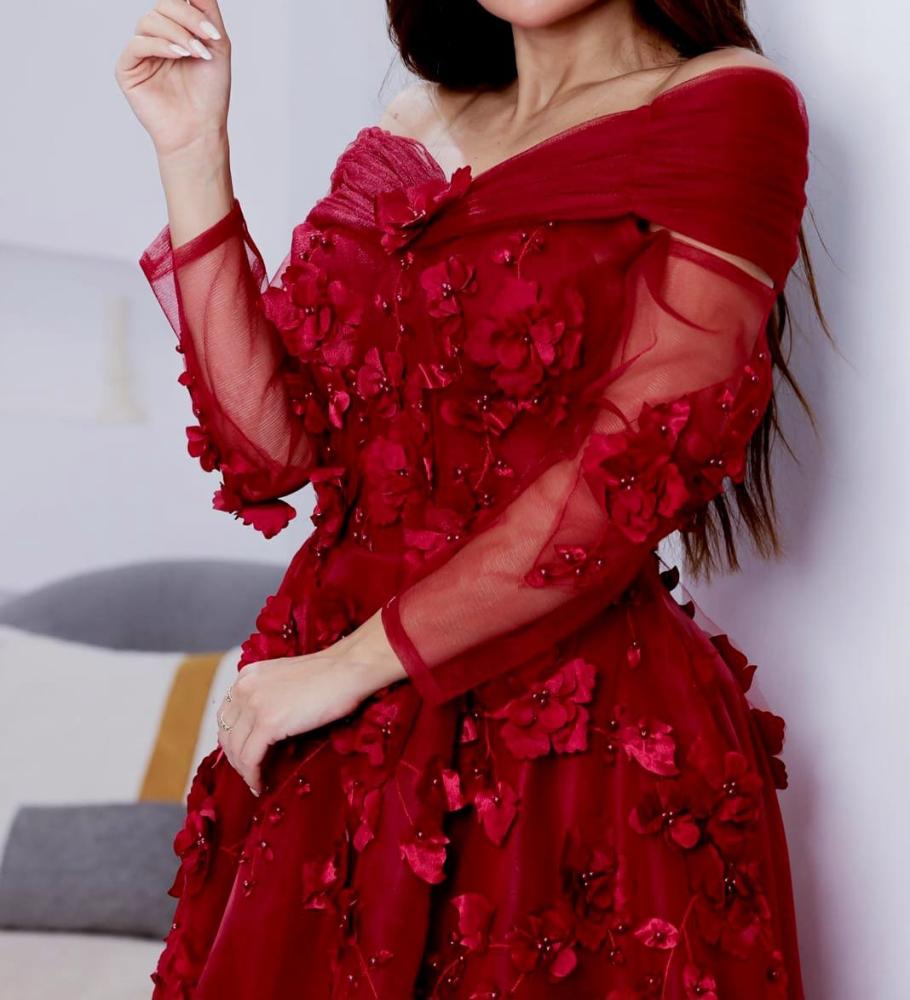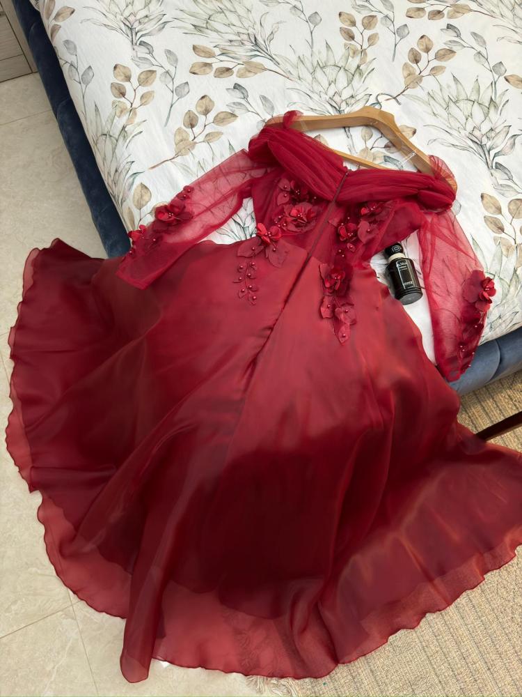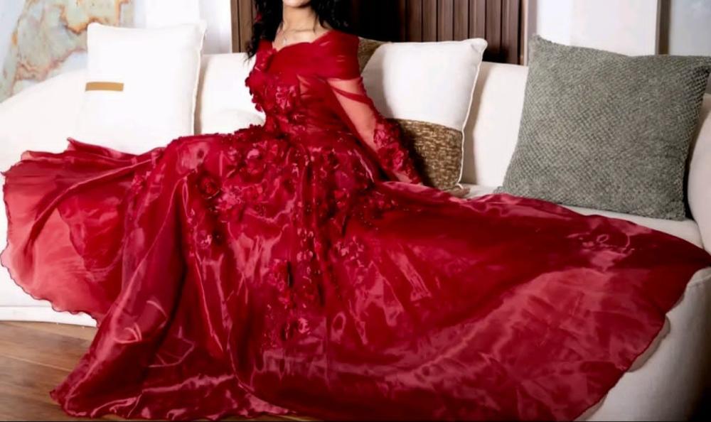 فستان سهره مناسبات لون احمر انيق راقي خامه اورجنزا ورد راقي