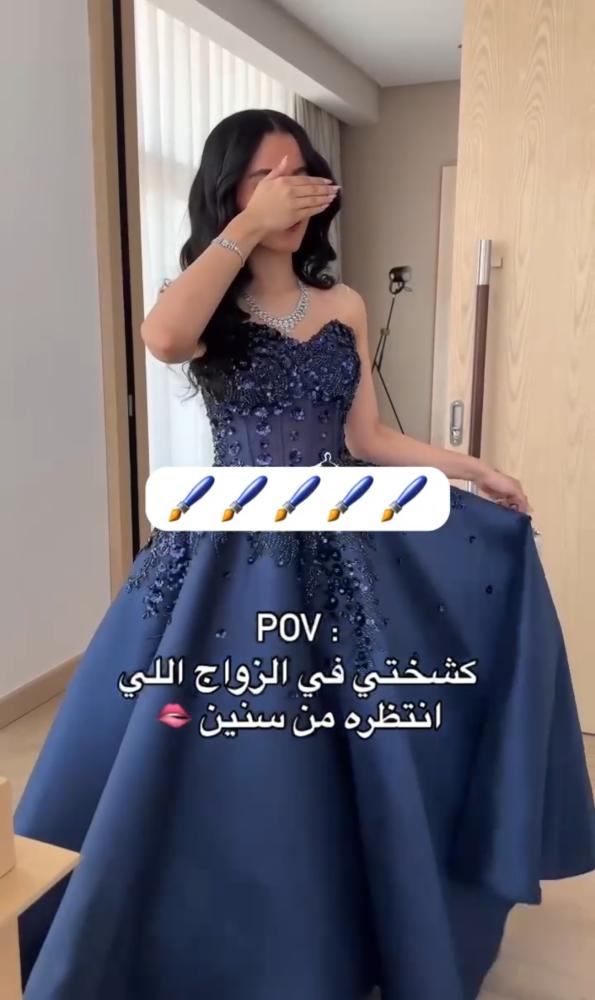 فستان سهره طويل مرصع بالكرستال الخامه: ميكادو +خرز شغل بدري