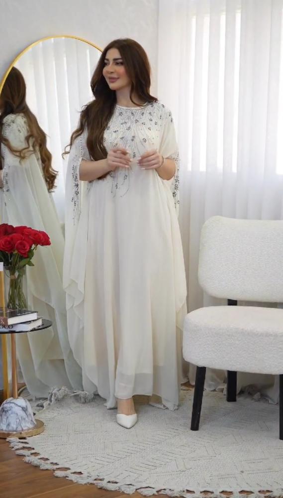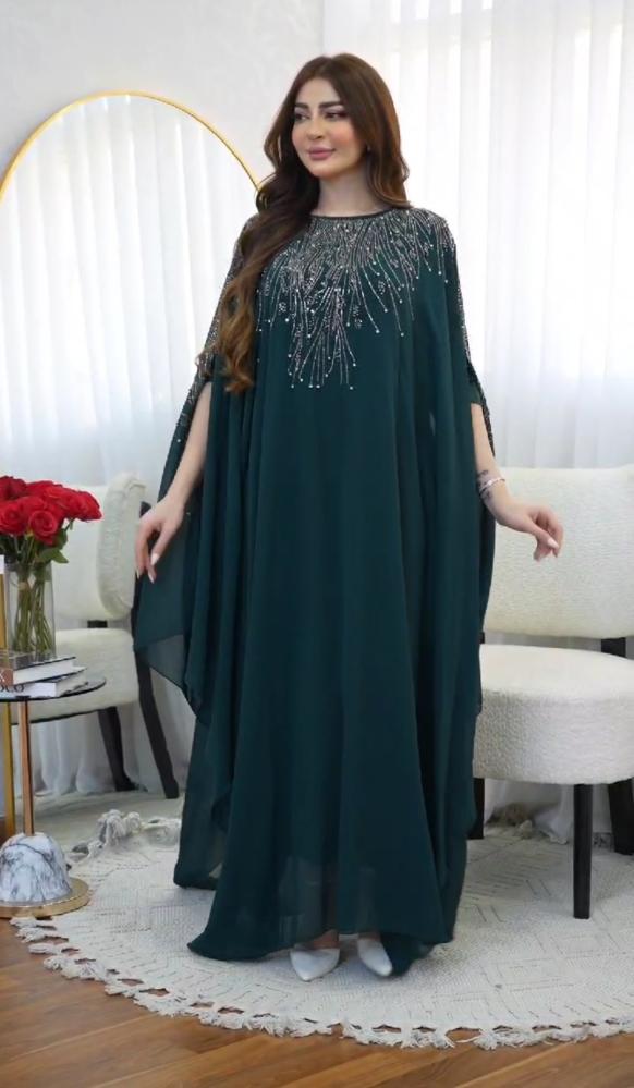 جلابيه طويل 5 اللوان راقي الخامه :جلابيه فراشه خام شيفون مزين بالكرستال و الفصوص والخرز بطانه كريب لكرا ناعم