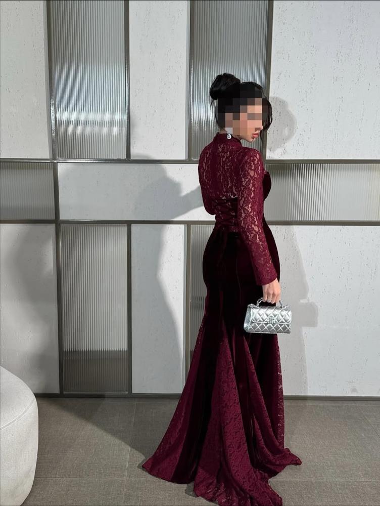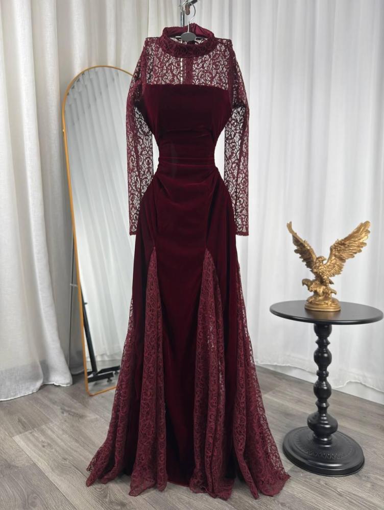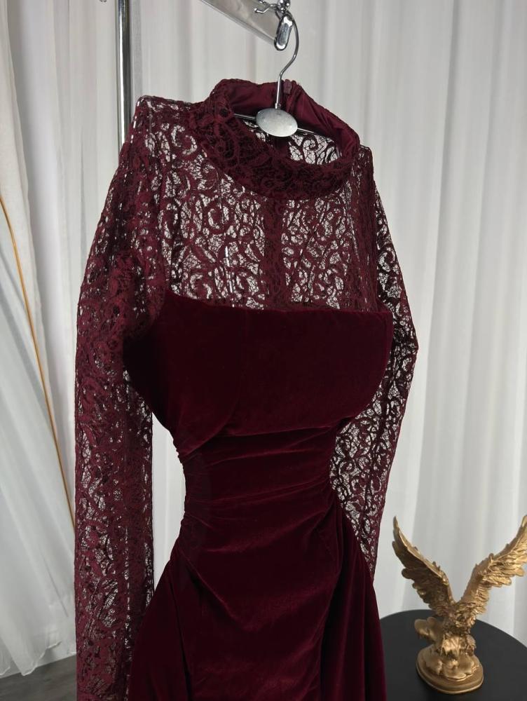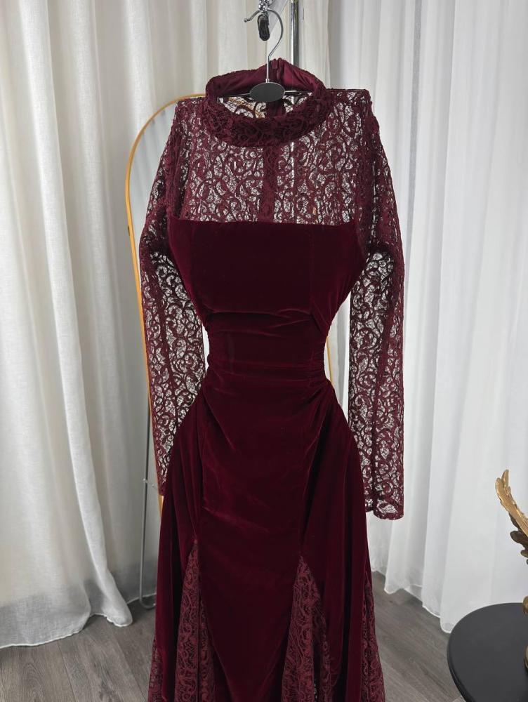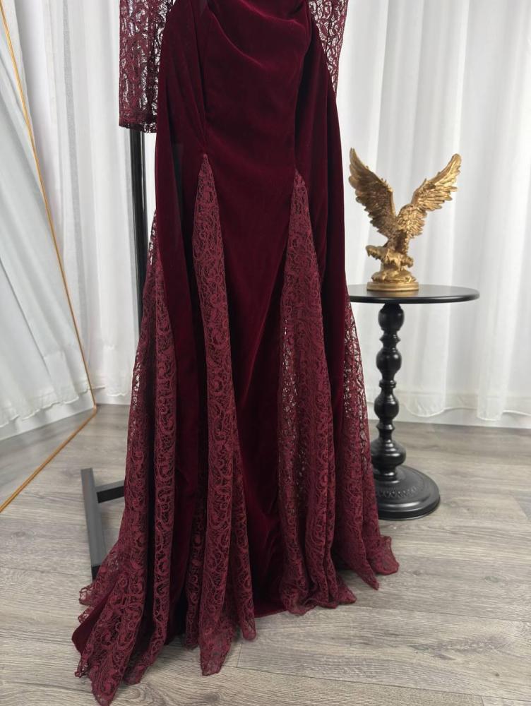 فستان سهره شتوي  راقي لون انيق خامه مخمل عل دانتيل