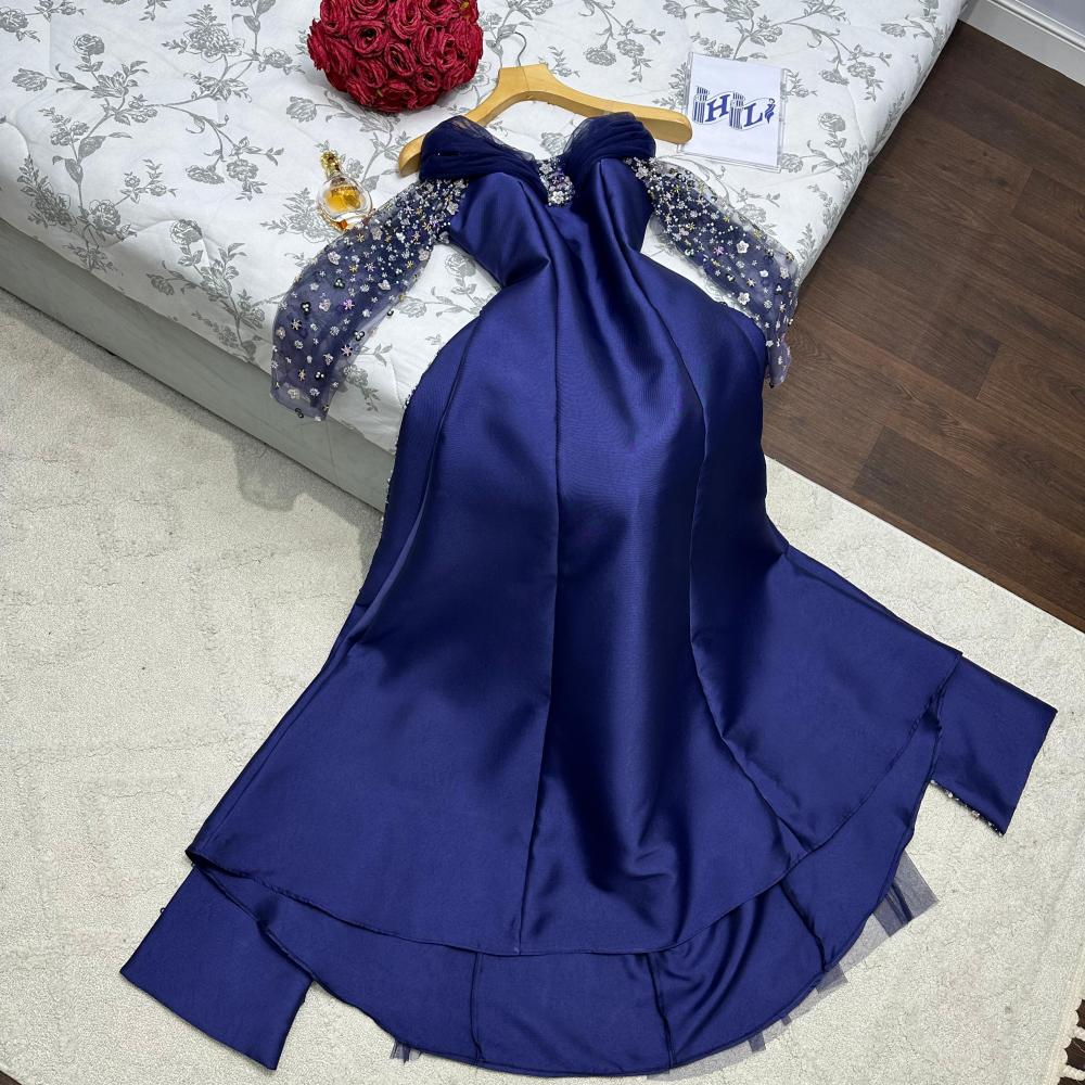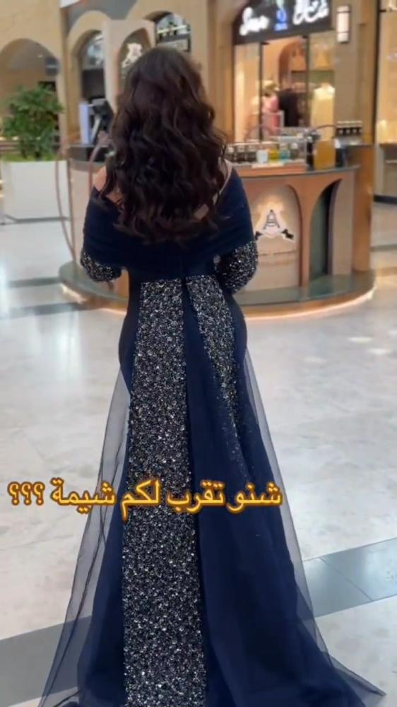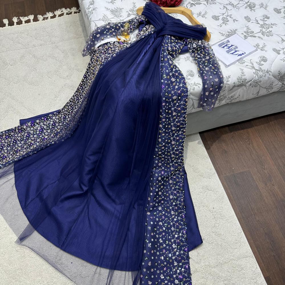 فستان سهره راقي لون كحلي خامه ميكادو +ترتر سهره