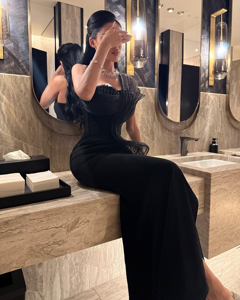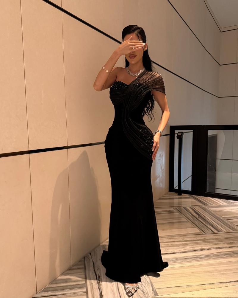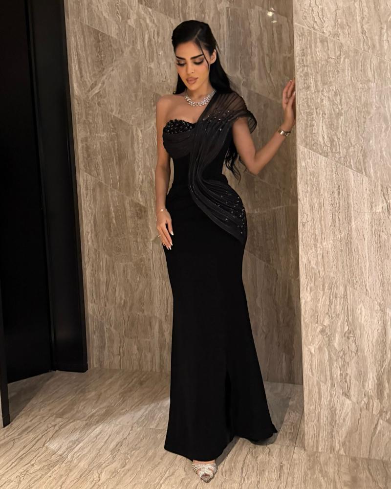 فستان سهره لون انيق راقي خامه كريب استرتش